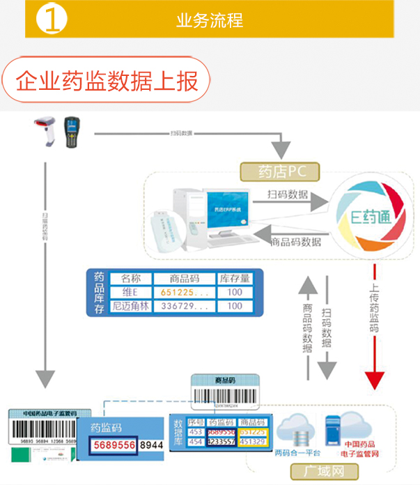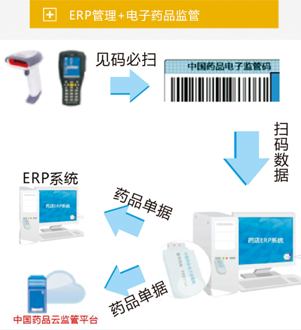 九畅E药通是专为广大药品经营企业打造的中国药品电子监管码数据上报解决方案,其通过本地化服务接口与企业进销存系统完美对接,实现二码合一特色功能。在不改变原有入出库操作流程基础上,只需扫一次药监码,即可同时完成药监码上传和进销存系统数据更新,省时省力,为企业日常工作创造无限便利。